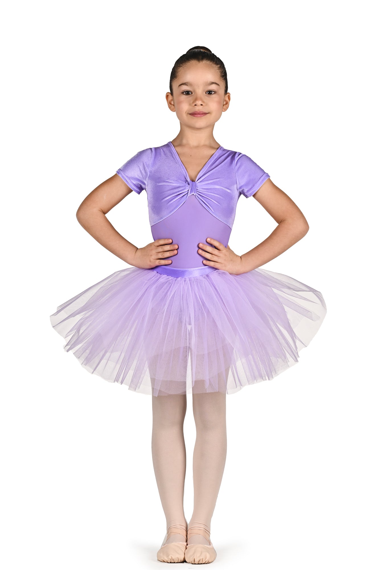 Tutù Genevieve TC7319 je elegantna in vsestranska obleka, zasnovana za mlade balerine. Izdelana je iz mehkega in udobnega blaga, ima korzet s kratkimi rokavi iz svetlečega žameta in nabrani izrez, ki dodaja pridih prefinjenosti. Večplastno krilo iz tila, ki je lahkotno in bujno, zagotavlja popolno svobodo gibanja in scenski videz. Idealna za predstave, nastope ali ure klasičnega plesa, tutù Genevieve združuje praktičnost in stil v enem kosu. Na voljo v različnih odtenkih, je popolna za spremljanje vsake mlade balerine pri njenih prvih korakih na odru.